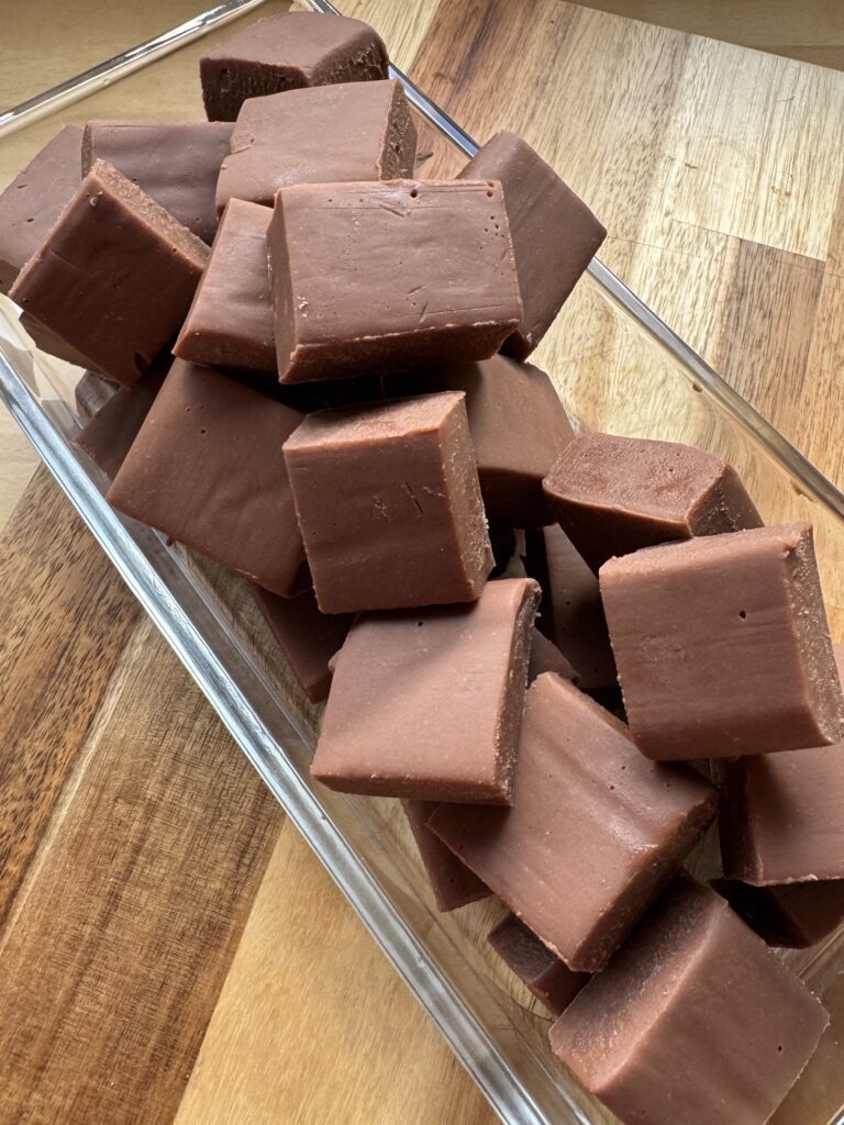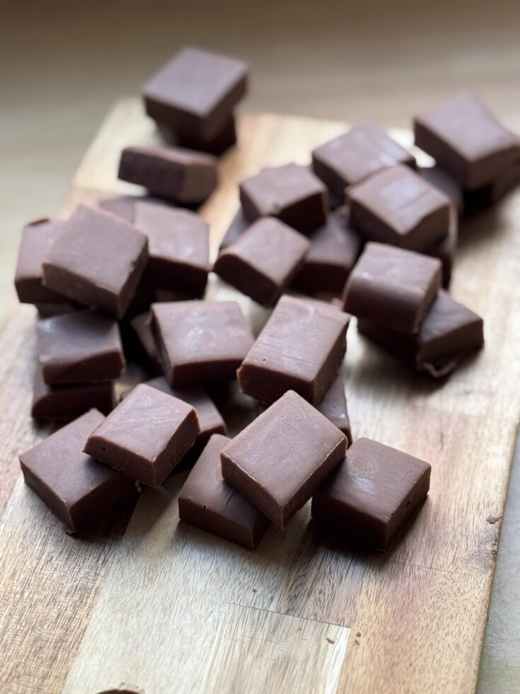 • When storing, use parchment paper – I found layers of parchment between the fudge that stopped it from sticking together. However, if you are storing in the fridge, you do not need to use this.